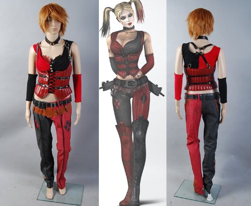 Batman Arkham Asylum City Harley Quinn Cosplay Costume Set custome-hand-tailor for cosplay and party use.