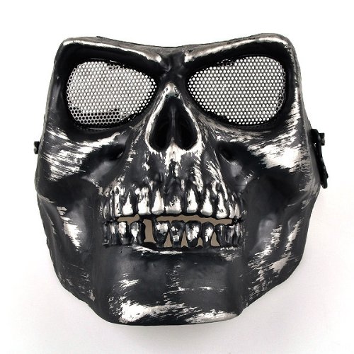 *1 x Silver Black Airsoft Full Face Protection Death Skull Safety Mask
