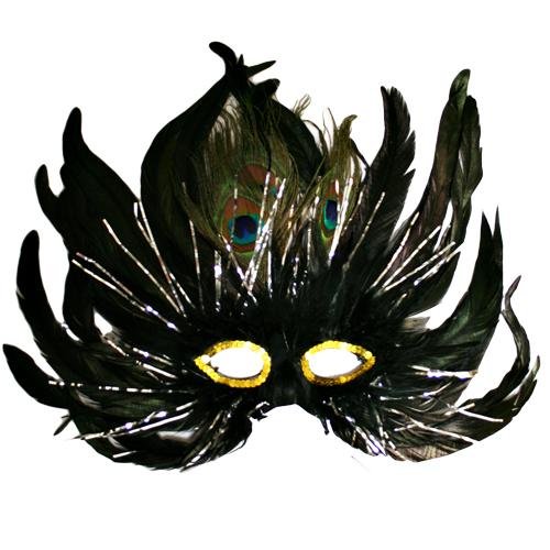 Peacock & Wispy Black Feather Mardi Gras Mask
