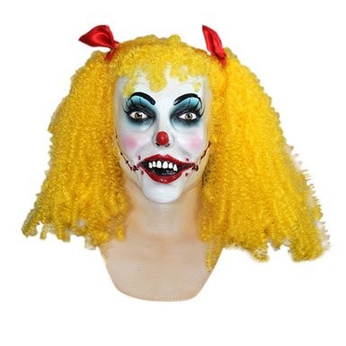 All clowns are horror shows. Let's just all accept that. They're monsters. Nobody thinks they're funny and everybody wants to cry blood out of fear. Even girl clowns are terrible. Maybe especially. Probably especially, actually. Just look at the Polly the Clown Demon Mask and tell me I'm wrong.You can't tell me that because you're paralyzed with fear. Clowns are as frightening as it gets. They're more frightening than a flaming skull controlling a chariot mounted by bears. RABID bears. No matter what shows up on Halloween night, so long as you're wearing the Polly the Clown Demon Mask, rest assured: You will make everyone want to die of fright.