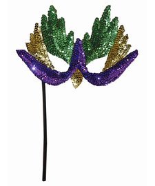 Purple Green Gold Mardi Gras Eye Mask On Stick